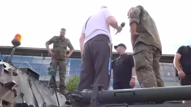 06:28:26Ein Ausbilder der Bundeswehr erklärt die spezifische Sprache und die Befehlsketten für die Bedienung eines Panzers. Es wird klargestellt, dass Anweisungen präzise und kurz sein müssen. Die Teilnehmer erfahren, dass die 56-Tonnen-Maschine extrem viel Kraft entwickelt und beim Bremsen ohne ABS arbeitet, was eine hohe Disziplin erfordert. Die Sicherheitsvorkehrungen, wie ein integriertes Gitter im Fall einer Überschlaggefahr, werden hervorgehoben.