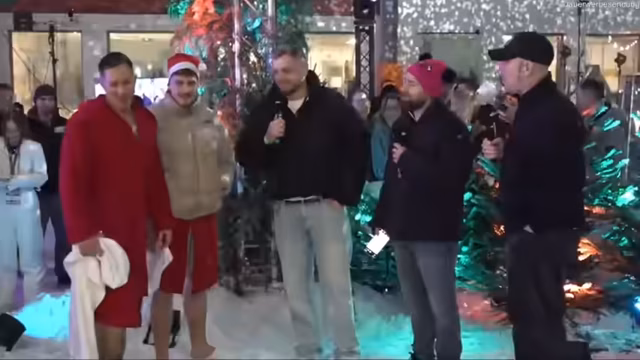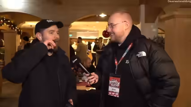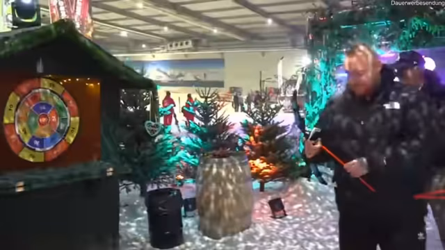 01:19:01Der Stream um 13 Uhr offiziell eröffnet, wobei die Logistik und die aufwendige, nächtliche Aufbauleistung des Teams hervorgehoben werden. Das Programm ist vielfältig und umfasst ein Eisbaden, ein American-Gladiator-Duell, diverse Gäste wie Rav Camorra, Zauber-Shows und als absolutes Highlight die Wichtel-Aktion gegen 20:30 Uhr, bei der auch hochwertige Geschenke im Spiel sind.