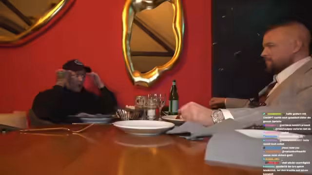 01:33:13Der Streamer und seine Begger besuchen ein italienisches Restaurant in Buxtehude. Sie wählen das Restaurant wegen seiner guten Küche und gehen in einen separaten Bereich, um ungestört zu essen. Während des Wartens auf das Essen wird die Kamera gerade justiert und Gespräche über pastuelle Vorlieben geführt.