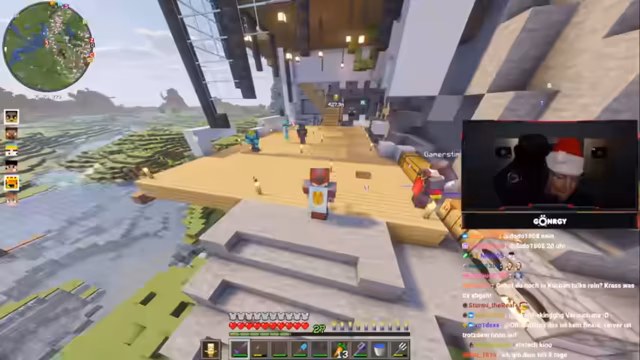 03:29:14Der Bau eines großen Schriftzugs 'Altenheim' steht im Fokus. Montana und seine Mitstreiter planen die freischwebende Konstruktion, diskutieren über die Platzierung der Buchstaben (H, E, I, M) und Lösungen für Platzprobleme. Es gibt technische Herausforderungen wie die korrekte Ausrichtung des 'M' und Entscheidungen, die Struktur zweistöbig zu bauen, um sie später freizustellen. Der Chat gibt Tipps, und nach mehreren Versuchen wird das Bauwerk erfolgreich fertiggestellt, wobei die Ästhetik diskutiert und optimiert wird. Der Abschluss wird mit einer Freecam-Betrachtung zelebriert.