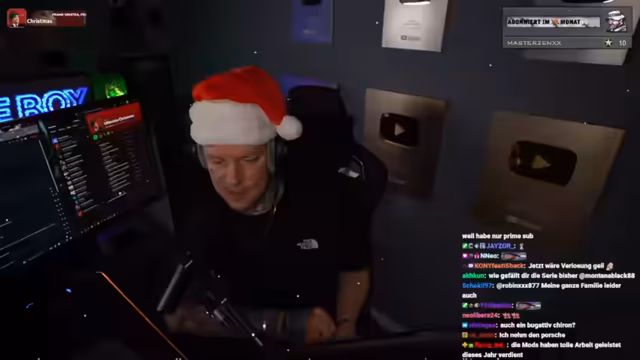 00:14:24Der Streamer gibt eine große Ankündigung für das Community-Wichteln am ersten Weihnachtstag. Er wird in seiner Halle weihnachtlich dekorieren und wertvolle Geschenke unter einem Weichenbaum verlosen. Bisher angekündigt sind unter anderem eine PlayStation 5, ein Apple iPhone 17 Pro, ein E-Scooter, ein Samsung-TV, zwei Apple Watches, ein MacBook und ein Gaming-PC im Wert von 9000 Euro. Alle Geschenke, bis auf den PC, werden aus eigener Tasche finanziert.