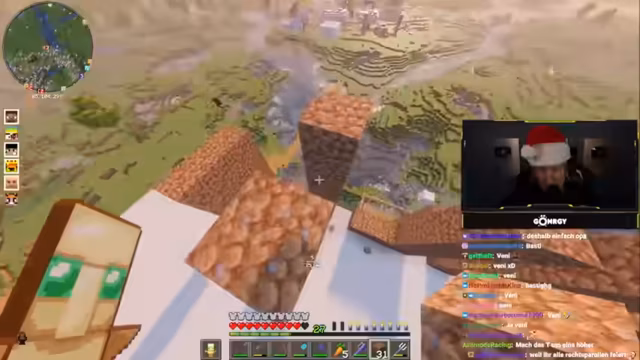 01:32:12Der Streamer erkundet einen neu entstandenen Krater in der Nähe seines Grundstücks und diskutiert mit Chat-Mitgliedern über dessen Ursprung. Es wird die Vorbereitung für ein bevorstehendes Winter-Event besprochen. Dazu gehört das Sammeln von Ressourcen wie Raketen und das Bauen einer Basis in einen Berg mit einem geheimen Gang. Ein Server-Betreiber wird erwähnt, der den Event moderieren wird.