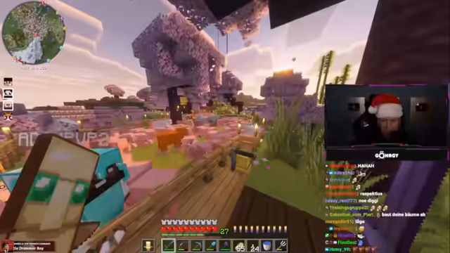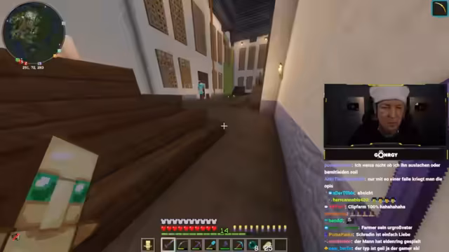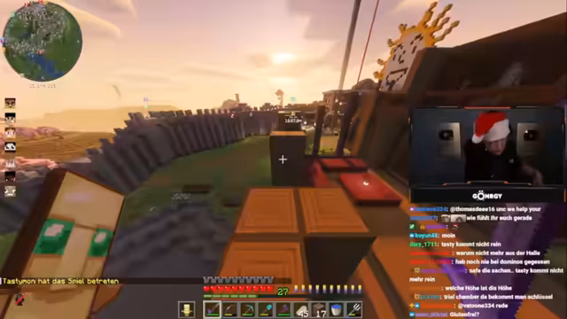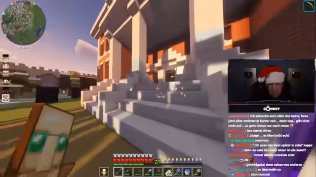 03:25:46Es entsteht eine hitzige Diskussion mit Schradin aufgrund vergangener Zerstörungen. Koordinaten (40,40,64) werden ausgetauscht, während Montana betont, dass Schradin sich entschuldigen sollte, obwohl er selbst nichts falsch gemacht habe. Die Situation wird mit Drohungen ('Bedenkt das gut, es könnte Konsequenzen haben') und Versuchen der Deeskalation ('Einfach mal nett sein') behandelt. Es folgt eine Versöhnung, bei der Montana sich entschuldigt und betont, dass Vergebung wichtig sei, auch wenn er nicht die ganze Zeit im Stream dafür opfern wolle. Gleichzeitig werden Handelsabsprachen für Gegenstände wie Glowstone getroffen.