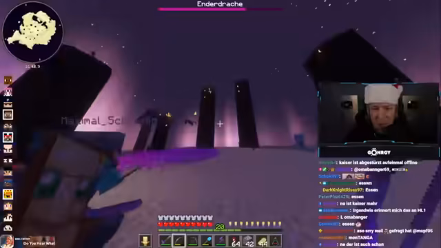 06:27:42Die Gruppe führt einen koordinierten Angriff auf den Enderdrachen durch, wobei Pfeile und Nahkampfwaffen eingesetzt werden. Nachdem der Drache besiegt ist, wird das Drachenei gespawnt, und die Spieler versuchen, es durch das Portal zu sichern. Es entstehen Diskussionen über die korrekte Nutzung von Ender-Perlen und Portalen, um zum Ei zu gelangen, während einige Spieler versehentlich in den Void fallen und ihre Ausrüstung verlieren. Die verbleibenden Spieler organisieren Rettungsversuche, indem sie Koordinaten austauschen und Wasser platzieren, um Stürze in den Void zu verhindern, während sie gleichzeitig nach versteckten Schiffen und Elytra-Sätzen suchen.