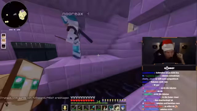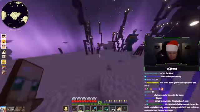 06:39:42Nach dem Drachenkampf konzentriert sich die Gruppe auf die Suche nach Schiffen in der Enddimension, um Elytra-Sätze und Raketen zu finden. Es kommt zu mehreren Stürzen in den Void, bei denen Spieler ihre gesamte Ausrüstung verlieren, was zu Frustration und Diskussionen über Rettungsstrategien führt. Einige Spieler versuchen, gefallene Teammitglieder zu retten, indem sie Koordinaten austauschen und Wasser platzieren, während andere weiter nach Schiffen suchen. Die Gruppe diskutiert die Herausforderungen, ohne ausreichend Raketen oder Elytras zu sein, und plant, die Suche fortzusetzen, während sie die Verluste beklagt und versucht, moralisch zu bleiben.