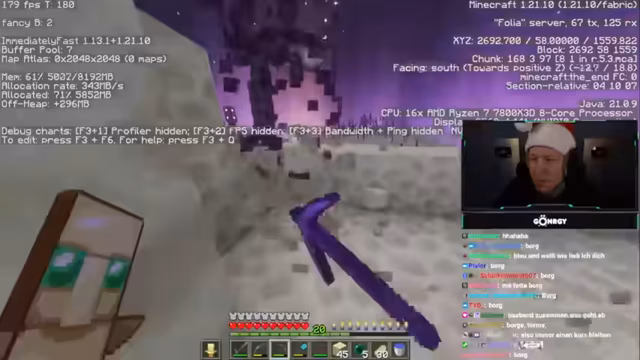 07:56:40Die Gruppe koordiniert den Ausgang aus der End-Welt und die Verteilung von restlichen Gegenständen wie Drachenköpfen. Es werden Techniken für den Mace-Einsatz gegen Gegner besprochen und persönliche Anekdoten über Familienmitglieder geteilt. Der Stream endet mit einer Reflexion über die erreichten Erfolge und der Bestätigung, dass alle Teilnehmer mit notwendigen Items ausgestattet sind.