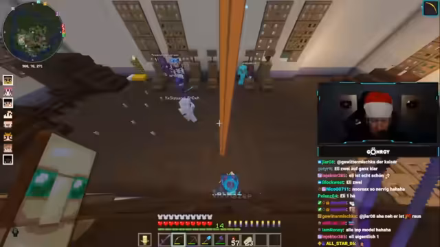 05:58:20Der Fokus liegt auf der Vorbereitung für den Endkampf, wobei Ender-Augen und Totems als entscheidend erachtet werden. Es wird über den Verlust von Ausrüstung wie Dreizack und Bogen diskutiert, was zu Frustration führt, da die Gruppe sich unvorbereitet fühlt. Spieler erhalten Anweisungen, ihre Ender-Chests zu platzieren, um Gegenstände zu teilen, während gleichzeitig über die Notwendigkeit von Pfeilen und Essen debattiert wird. Die Gruppe versucht, sich am Rathaus zu versammeln, um organisiert in den Endkampf zu ziehen, wobei Verzögerungen durch technische Probleme und fehlende Ressourcen auftreten.