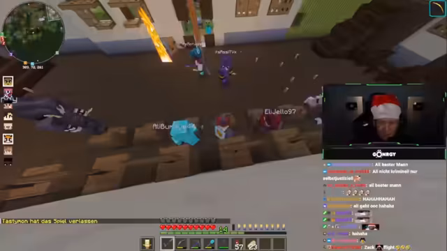 02:28:13Der Streamer übt intensiv MLG-Techniken, indem er Eimer wirft und versucht, sie in der Luft aufzufangen. Es kommt zu einer Wette mit mehreren Mitspielern um Nashis, die hohe Einsätze und Spannung mit sich bringt. Nach zahlreichen Versuchen gelingt es ihm, mehrmals hintereinander erfolgreich zu landen, was Bewunderung auslöst. Dabei werden verschiedene MLG-Methoden wie Verwendung von Slime-Blöcken oder Spinnennetz diskutiert. Trotz gelegentlicher Frustration bei Fehlschlägen wird die Übung fortgesetzt, um die Technik zu perfektionieren.