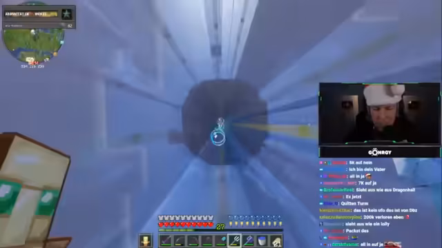 00:21:24Nach diversen Themen und Zuschauerinteraktionen startet der Stream in das Spiel Minecraft. Ziel ist das Diamantenabbauen in FitnaCraft. Es zeigt sich jedoch, dass der Spieler, genannt Noten, überall auf dem Server präsent ist und stört, was den Streamer frustriert. Trotzdem werden weitere Höhlen erkundet und versucht, Ressourcen zu finden. Der Alltag auf dem Server wird als anstrengend beschrieben, insbesondere durch die ständigen Konflikte und den Stress mit anderen Spielern.