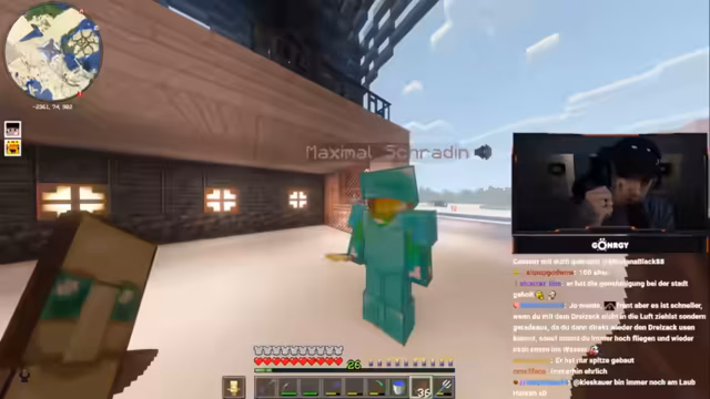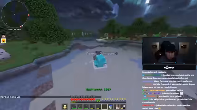 00:40:13Excel, ein anderer Streamer, kontaktiert Monte und bedankt sich für die Einladung zu Montes Event. Excel spricht Monte auf den Bau seines Hauses in Minecraft an und behauptet, Monte hätte es nicht selbst gebaut, sondern Trimax oder Revi die ganze Arbeit machen lassen. Monte korrigiert dies und erklärt, dass Revi lediglich die Inneneinrichtung gemacht hat, das Haus selbst aber von ihm gebaut wurde. Excel bietet an, Monte einige Minecraft-Basics zu zeigen, insbesondere wie man automatische Karottenfarmen mit Villagern baut, da Monte selbst noch nicht so weit fortgeschritten ist. Es kommt zu einem humorvollen Schlagabtausch über ihr Minecraft-Wissen und Alter. Monte erinnert Excel an dessen erste Nachricht im Chat aus dem Jahr 2017 ('Sexy, no joke, wer von euch beiden hat die größeren Möpse? Kappa'), was zu Gelächter führt. Excel bestreitet, diese Nachricht geschrieben zu haben, und vermutet, dass Kylo zu der Zeit in seinem Account eingeloggt war. Sie sprechen über die lockeren Zeiten im frühen Streaming, in denen man weniger aufpassen musste, was man sagt, im Gegensatz zur heutigen Cancel Culture. Monte lehnt Excels Angebot, ihm heute Minecraft-Basics zu zeigen, ab, da er bereits mit Schradin verabredet ist, um diesem die Grundlagen beizubringen, und sich auf das Sammeln von Gold für Goldkarotten konzentriert. Sie philosophieren über Minecraft als Phasen-Game und die Notwendigkeit, die Spannung aufrechtzuerhalten, indem man nicht jeden Tag dasselbe spielt.