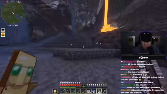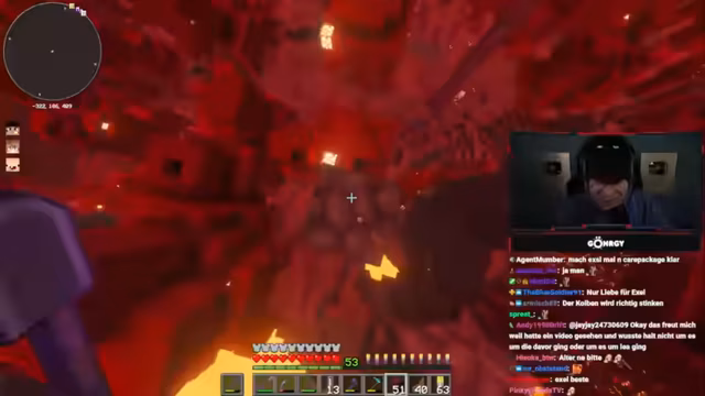 02:56:07Die Diskussion beginnt mit dem Wert goldener Karotten in Minecraft, die als 'OP' (overpowered) für ihre schnelle Heilung gelten. Es wird festgestellt, dass der Spieler keine goldenen Karotten besitzt, obwohl er behauptet, sie in einer Kiste zu haben. Kurz darauf fällt der Spieler in Lava, was zu einer hektischen Situation führt, da er zu weit entfernt ist, um sofort gerettet zu werden. Er wird angewiesen, abzubauen und herauszuspringen, was ihm jedoch ohne Waffe schwerfällt. Die Situation eskaliert, als er angibt, im Himmel zu fliegen und Hilfe zu benötigen, während er sich noch in seinem Haus befindet. Die Existenz eines Lava-Lochs in der Basis wird erklärt: Es dient dazu, nicht benötigte Gegenstände zu entsorgen. Der Spieler hat ein Totem verbraucht und benötigt dringend Nahrung, woraufhin ihm Steaks angeboten werden, da goldene Karotten zurückgehalten werden.