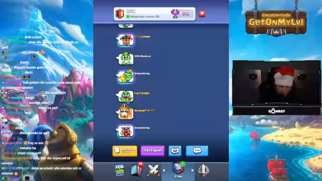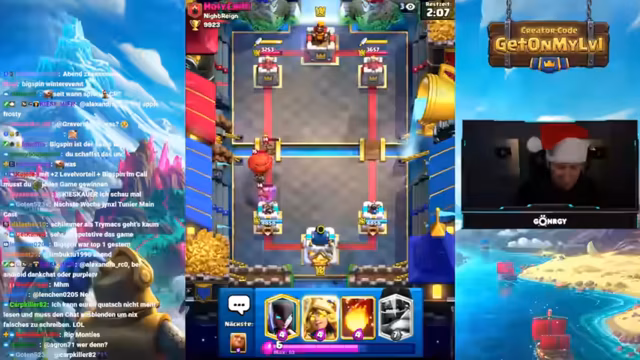 02:16:26Beim Streaming von Clash Royale taucht BigSpin im Gespräch auf und erwähnt, dass er nach Köln zur Weihnachtsfeier gefahren sei. Sie unterhalten sich über verschiedene Decks und Meta-Karten. Der Streamer äußert seine starke Abneigung gegen den Bogen als Hasskarte und betont, dass diese Karte im aktuellen Meta zwar stark sein könne, aber als räudig und unfair angesehen werde. BigSpin bestätigt seine Erfahrungen mit dieser Karte und das Interesse, in den Clan aufgenommen zu werden.