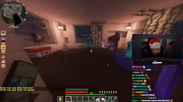 06:07:58Während der Vorbereitungen kommt es zu zahlreichen Störungen und technischen Problemen. Ein anderer Spieler sprengt das Haus des Streamers mit TNT, was zu einem Streit führt. Es werden auch Probleme beim Bauen und bei der Navigation in der Welt thematisiert. Der Streamer kritisiert Zuschauer, die ständig die Gruppen wechseln und so das Spiel für alle erschweren.