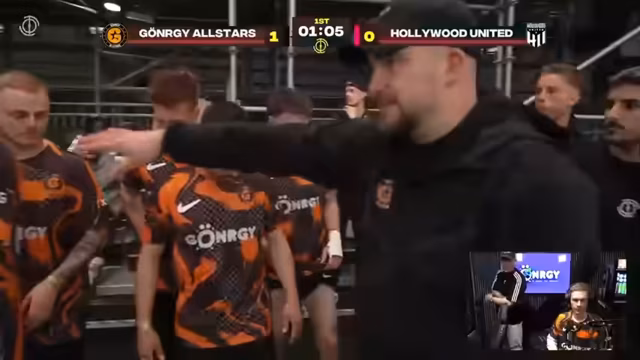 01:02:14Das Finale gegen Hollywood United steht unmittelbar bevor. Die Nerven liegen blank, Monte beschreibt die hohe Anspannung und den Druck, alles oder nichts zu geben. Der Slogan 'Die Energie kommt aus Hollywood' wird erwähnt, was die Stimmung und den Kampfgeist des Gegners unterstreicht. Streamer Monte gibt einen optimistischen Tipp von 4:2 für Gönnergy ab, während er selbst weiterhin wegen der Verletzungsangst auf dem Platz sitzen bleibt.