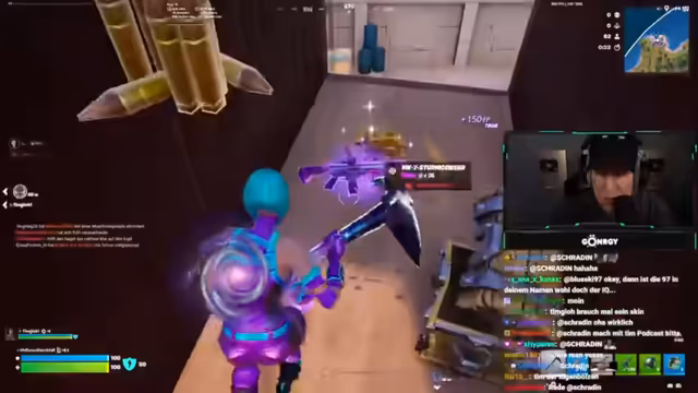 03:25:56Im weiteren Verlauf der Fortnite-Session zeigt Tim spürbare Fortschritte in seiner Taktik und Ausrüstung. Das Duo landet an strategisch günstigen Orten, sammelt Loot und koordiniert sich besser bei Kämpfen. Sie können einen Gegner ausschalten, was das Selbstbewusstsein stärkt. Dennoch endet die Runde tragisch, da der Streamer im entscheidenden Moment nicht mit dem Auto flieht, was ihm selbst als Fehler bewusst wird. Die Runde endet mit einem Kill, aber ohne den Sieg.
