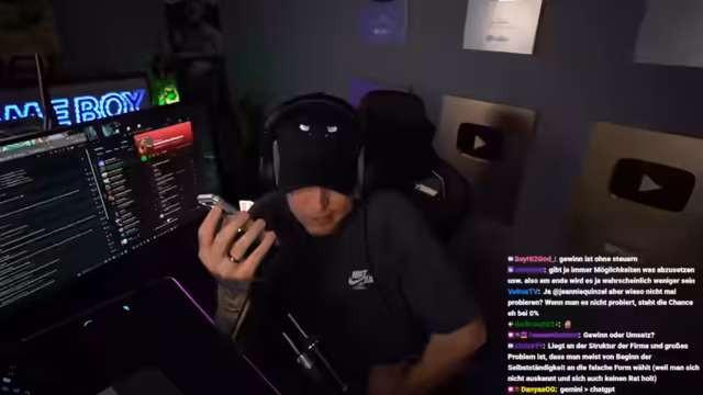 00:47:22Nach anfänglichem Smalltalk über Inhalte auf YouTube, wie ein Upload von Spiegel TV, geht es um allgemeine Themen der Community. Er gibt zu, derzeit eine große Leidenschaft für Motorräder zu entwickeln, nachdem ihn eine Harley-Davidson-Partnerschaft erreichte. Ein Zuschauer fragt nach der Teilnahme an den Eli Summer Games, wofür es aktuell eher unwahrscheinlich ist, da sein Vater Geburtstag hat und gleichzeitig eine Tour mit Schradin und Zabex ansteht. Des Weiteren erwähnt er humorvoll ein Paket, das abgegeben wurde, und plant, sich mit Zuschauern ein Video von KuchenTV anzusehen.
