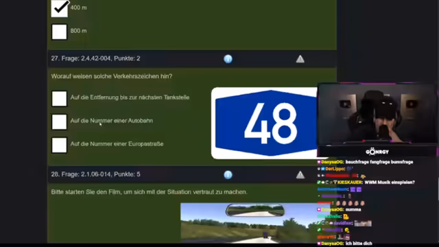 01:45:19Der Stream schlägt von der theoretischen Diskussion in eine praktische und unterhaltsame Richtung um. Der Streamer absolviert live eine Theorieprüfung für den Motorradführerschein. Er beantwortet verschiedene Fragen zu Verkehrsregeln, wie z.B. das Verhalten an Bahnübergängen, das Parkverbot oder das Überholen von Radfahrzeugen. Die atmosphere ist dabei locker und humorvoll, wobei der Streamer bei einigen Fragen unsicher ist und sich mit dem Chat abstimmt.