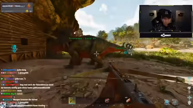 03:38:31Das Gameplay wird von chaotischen Situationen und internem Teamkonflikt überschattet. Während der Jagd auf einen rivalisierenden Spieler namens Willi, der als obdachloser und verrückt dargestellt wird, wird aus Versehen der geliebte Stegosaurus des Teams getötet. Dies führt zu großem Unmut und Streit im Chat. Trotzdem versucht die Gruppe weiterzukämpfen, lootet Kisten und zieht einen Therizinosaurus als Ziel in Erwägung, was zeigt, dass der Spielspaß trotz Frustration und Verlusten im Vordergrund steht.