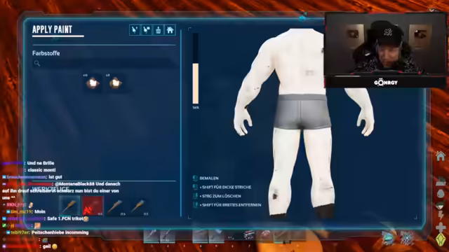 02:57:44Nach einem Server-Reset findet sich der Streamer nackt und unversehrt wieder, während sein Mitstreiter, der zuvor komplett weiß bemalt wurde, nun FCN auf dem Rücken trägt. Die Situation ist von Verwirrung und Chaos geprägt, wobei sich der Streamer über die neue Optik lustig macht. Nachdem sie ihren toten Flugsaurier gefunden haben, werden neue Pläne geschmiedet. Das Ziel ist es, ein großes Lager zu bauen und sich weiter mit dem Zähmen von Tieren und dem Beschaffen von Loot Drops zu beschäftigen, um wieder an ihre Verluste anzuknüpfen.