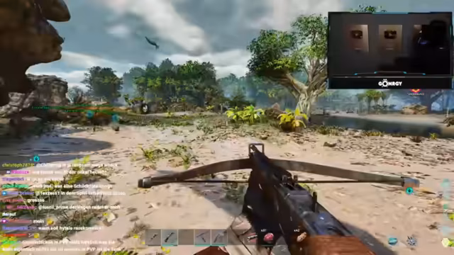 01:30:21Der Streamer erinnert sich an seine Zeit als Internetradio-DJ mit 20.000 Zuhörern und wechselt dann zum Thema Ark. Er zeigt seinem Mitstreiter eine selbstgecraftete Armbrust und diskutiert die Nutzung von Betäubungspfeilen. Es werden wilde Ideen wie das Einschließen von Spielern in Käige oder das Bemalen von Mitspielern getestet und als witziger Running Gag bezeichnet. Das Bemalen erfordert Farbe und Pinsel, was zu technischen Herausforderungen führt, aber als spaßiger und kreativer Teil des Erlebnisses gesehen wird.