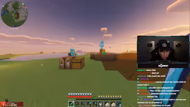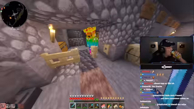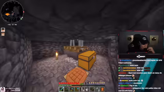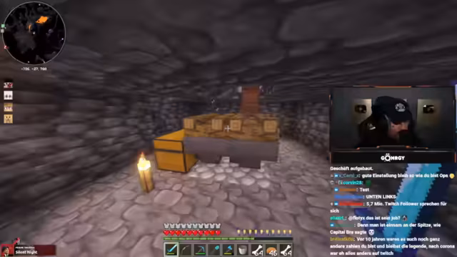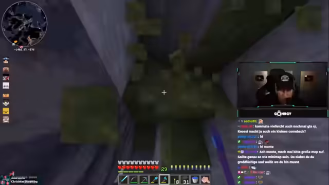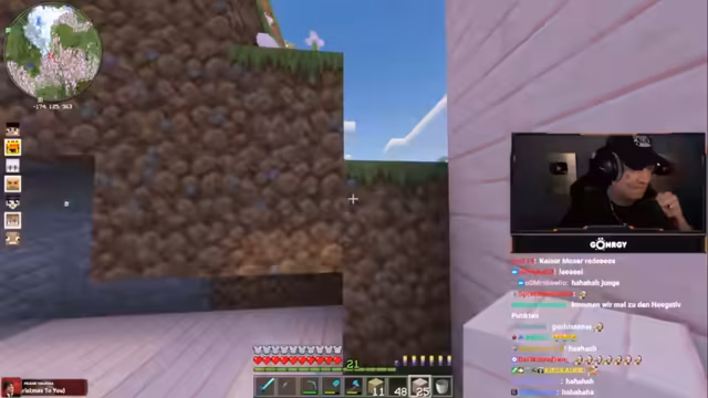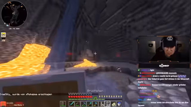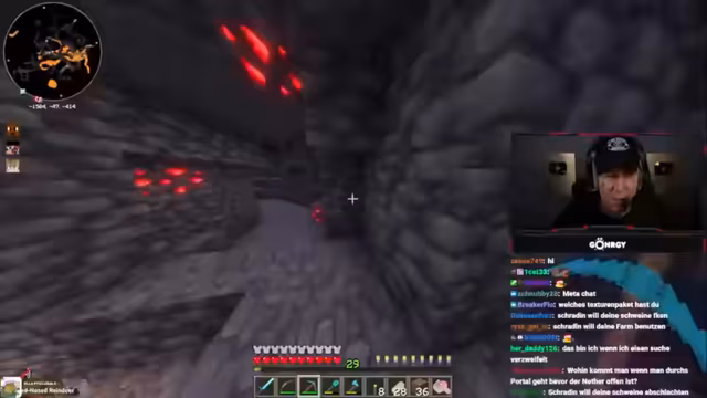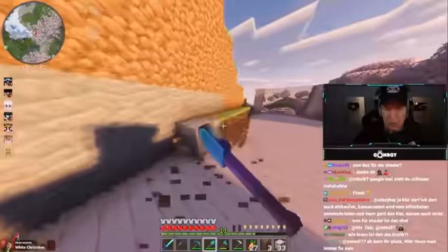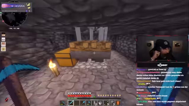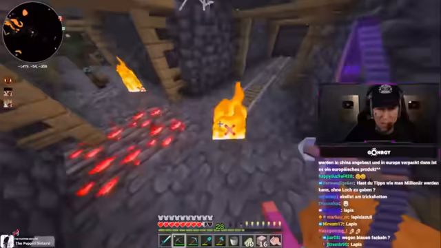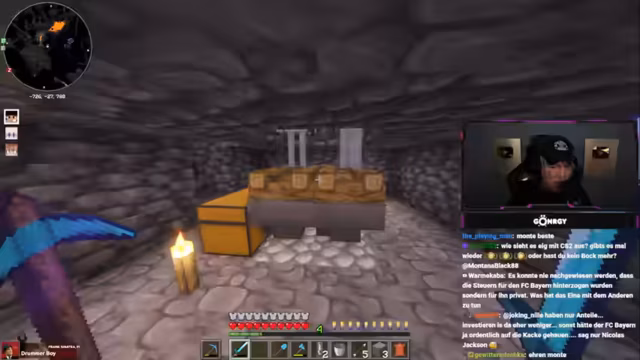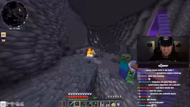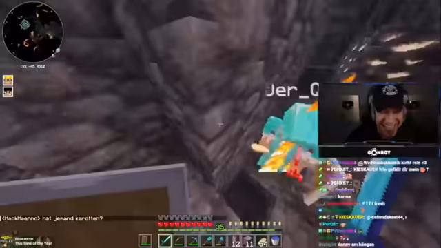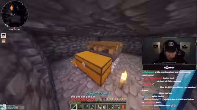 08:01:11Zu Beginn des Streams erkunden Monte und Danny eine Höhle, suchen nach Diamanten und stoßen auf Herausforderungen wie Lava und feindliche Mobs. Sie diskutieren die Qualität der Höhle, bemerken, dass sie nur wenige Diamanten findet, und beklagen die ständigen Angriffe durch Skelette und Spinnen. Dabei geht es um Ausrüstungsprobleme, etwa fehlende Rüstungen oder Schäden an Booten, was die Erkundung erschwert. Die Unterhaltung ist geprägt von humorvollen Wortgefechten mit dem Chat und der Frustration über die geringe Ausbeute.
