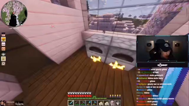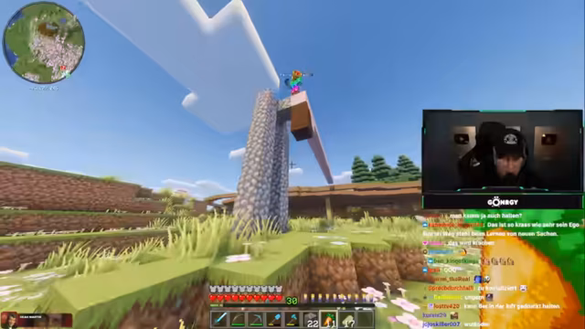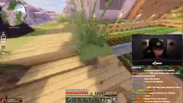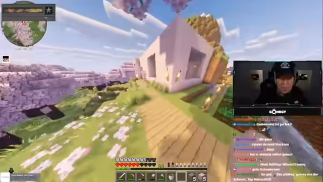 03:23:42Montana äußert Frustration über Diamanten, die man gewinnt, aber sinnlos verliert, vergleichbar mit Real Life. Er plant ein neues Bauvorhaben und diskutiert mit dem Chat über Holzarten (Eiche, Birke) und Böden, während er kurzzeitig in einer Diamantenhöhle ist. Ein Bauvorhaben wird als freigestylt beschrieben, aber noch als nicht perfektioniert eingestuft. Es folgen Ideen für einen Wasserfall und die Notwendigkeit, Material wie Lianen zu organisieren.