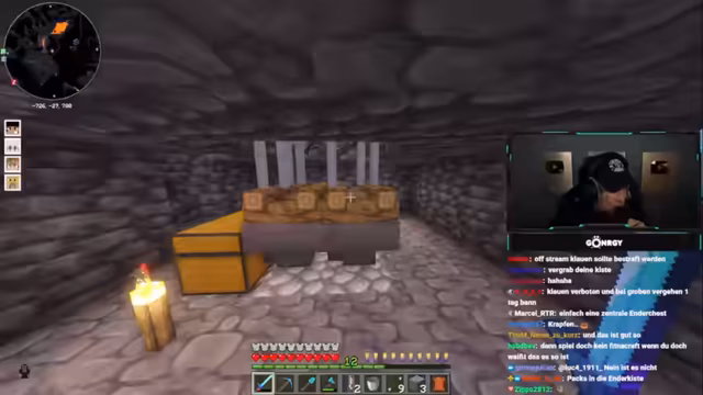 10:06:31Der Stimmung kippt, als die Streamer feststellen, dass ein wertvolles Buch aus ihrer Kiste gestohlen wurde. Sie reagieren mit Empörung über den "ehrenlosen" Dieb ("solche dummen Fickviecher"). Dies führt zu einer allgemeinen Diskussion über Server-Sicherheit. Die Streamer erwlegen drastische Maßnahmen: Sie planen, ihre Kisten zukünftig besser zu verstecken oder sogar "offline" zu gehen, um weitere Diebstähle zu verhindern. Ein weiterer Spieler ("Waddy") tritt auf und löst durch seine unerwartete Anwesenheit zusätzliche Spannungen aus.