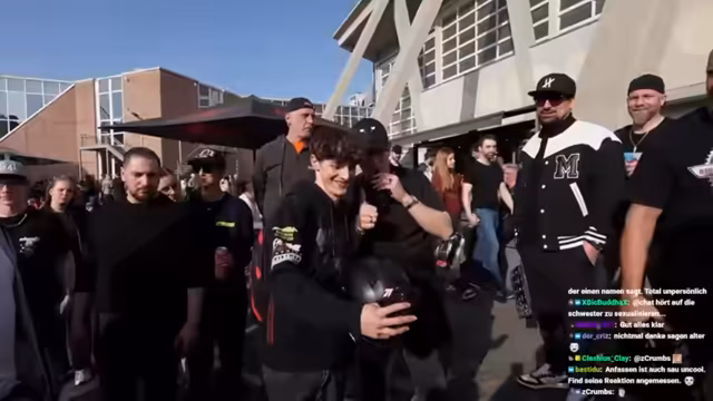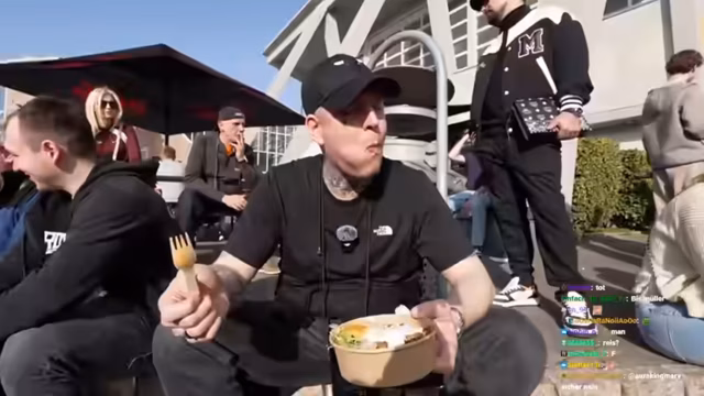 02:10:23Der Stream verlagert sich in den Essensbereich der Motorradmesse, wo verschiedene Gerichte wie Burger, Pizza und Hähnchenkebab angeboten werden. Nachdem der Streamer eine Dönerbox bestellt und sich gesetzt hat, nimmt er sich Zeit für Fotos und Gespräche mit Besuchern. Ein Höhepunkt ist die Interaktion mit einem jungen Fan, dem er einen High Five gibt. Der Streamer betont, dass er nicht umsonst annehmen möchte, und bezahlt sein Essen, was zu einer positiven Diskussion über Wertschätzung und Fairness im Chat führt.