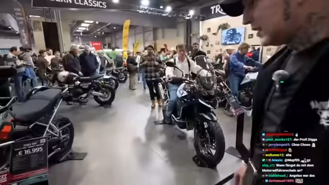 00:09:36Nach der Ankunft auf der Messe beschreibt der Streamer den ersten Eindruck. Er erwähnt, dass die Messe gestern sehr voll war, heute aber aufgrund des guten Wetts eventuell etwas weniger Publikum erwartet. Er betont, dass er kein Motorrad-Experte ist, sondern das Thema frisch und neugierig angeht, und bittet die Zuschauer im Chat um Verständnis. Er äußert seine Vorfreude darauf, verschiedene Motorräder anzuschauen und möchte jemanden finden, der ihm das Thema näherbringt.