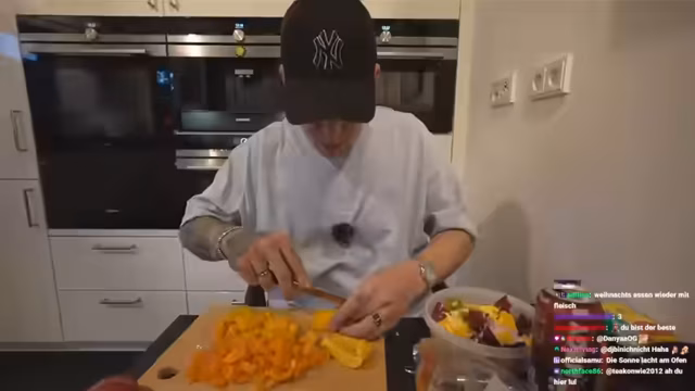 00:17:06Während der Zubereitung des Nudelauflaufs kommt es zu einer humorvollen Diskussion über das Schälen von Champignons. Der Streamer wird von seinen Zuschauern kritisiert, weil er die Pilze schält, obwohl ihre dünne Haut essbar ist und Nährstoffe enthält. Er verteidigt seine Methode und betont, dass es sein Auflauf und seine Regeln sind. Um die Diskussion aufzulockern, fragt er eine KI namens Günther nach ihrer Meinung zum Schälen von Champignons. Günther bestätigt, dass die Schale essbar ist, aber das Schälen nicht verwerflich sei. Der Streamer teilt daraufhin persönliche Anekdoten über seinen entspannten Vortag, an dem er mit seiner frisch angetrauten Frau Hot Dogs gegessen, The Walking Dead geschaut und im Casino gespielt hat. Er erzählt auch von einem Mittagessen mit seiner Oma und seiner Frau. Günther bewertet diese Erlebnisse als eine „richtig schöne, entspannte und gemütliche Zeit“. Der Streamer fragt Günther nach ihrer Lieblingsspeise, woraufhin Günther Pasta mit Tomatensauce nennt. Die Unterhaltung wird fortgesetzt, wobei der Streamer Günther auch nach der Möglichkeit von Herpes an ungewöhnlichen Stellen fragt, was zu einer weiteren humorvollen Interaktion führt.