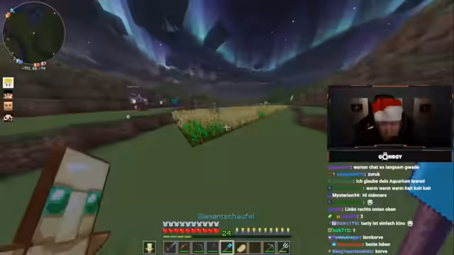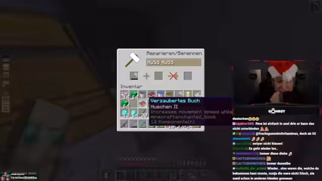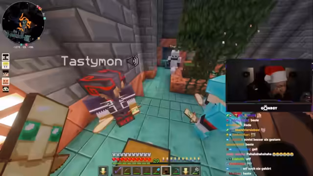 09:03:00Die Szene wechselt zu einem gemeinsamen Minecraft-Spielen. Das Hauptziel ist das Sammeln von Schlüsseln, um Truhen öffnen zu können. Der Streamer und sein Team kommunizieren intensiv über Bewegungen und Standorte in der Spielwelt, wobei es zu einigen Verwirrungen und unfreiwillig komischen Momenten kommt. Hierbei werden auch Items wie Wind Burst-Bücher eingeführt, deren Aufbau und Funktion im Detail besprochen werden. Das Gameplay ist geprägt von Exploration, Ressourcensammeln und der Verteidigung gegen Monsterangriffe.