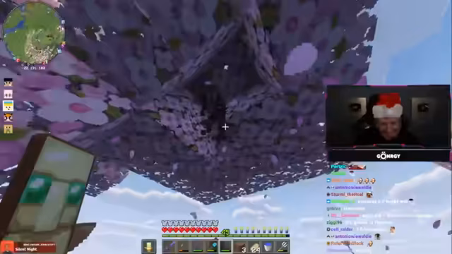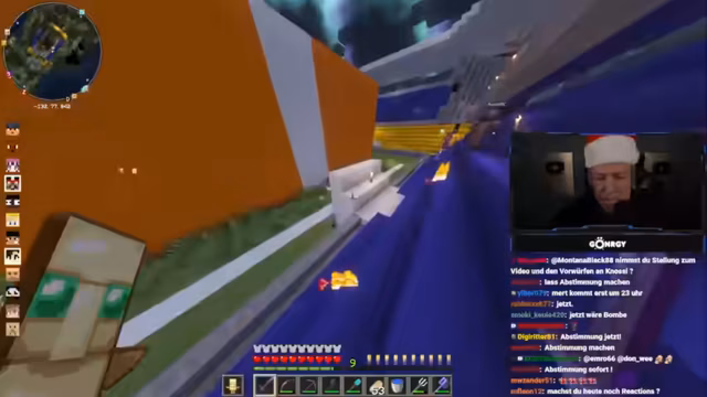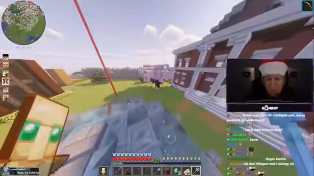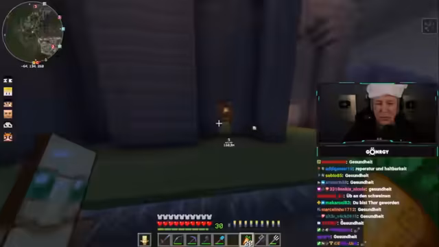 10:21:51Der Fokus verlagert sich auf PvP-Aktivitäten, insbesondere ein Duell zwischen zwei Teilnehmern, bei dem der Versuch unternommen wird, den Gegner mit einem Hammer aus der Höhe zu eliminieren. Währenddessen kommt es zu technischen Problemen, Verwirrung über Inventar und Gegenstände sowie zu unvorhergesehenen interaktionen, darunter das Platzieren von Bomben und die Zerstörung von Gebäudeteilen durch verschiedene Teilnehmer.