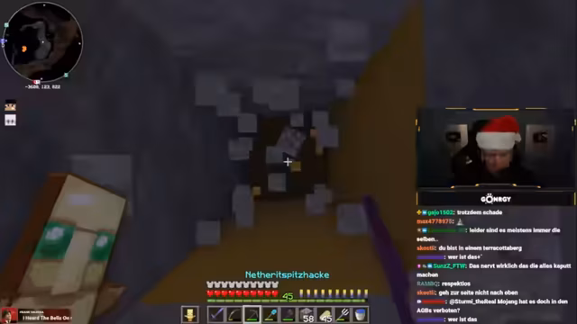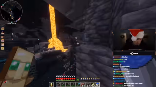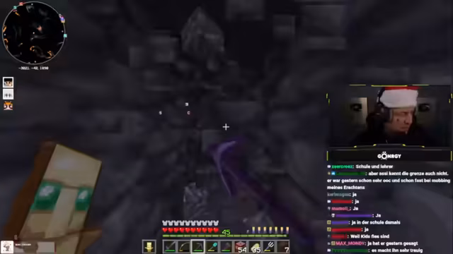 00:58:05Nach der Diskussion um den Zustand des Servers geht der Streamer mit dem Ziel, Diamanten zu farmen, in eine zuvor gefundene Riesenhöhle. Er zeigt sich beeindruckt von der Größe der Höhle, ist aber frustriert von der hohen Konzentration des Warden-Mobs, der jeglichen Fortschritt blockiert und eine Farmung unmöglich macht. Er beschließt, vorerst aus der Höhle auszusteigen.