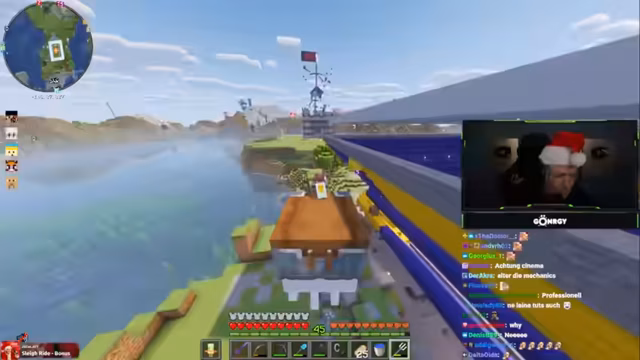 02:43:33Es entsteht ein Konflikt wegen einer Flagge, die die Sicht auf ein Haus blockiert. Der Streamer droht damit, das Haus anzuzünden, falls die Flagge nicht entfernt wird. Es wird ein Handel ausgehandelt: Für 120 Smaragde, die bis zu einer bestimmten Zeit beschafft werden müssen, soll die Flagge entfernt werden und der Streamer verspricht ein Geschenk. Während der Verhandlung werden verschiedene seltene Fische als Geschenk vorgestellt und diskutiert.