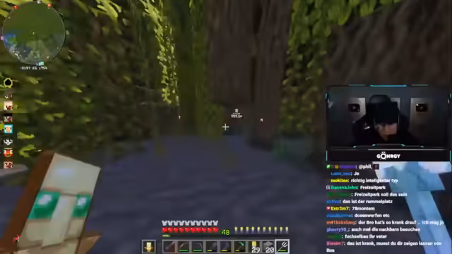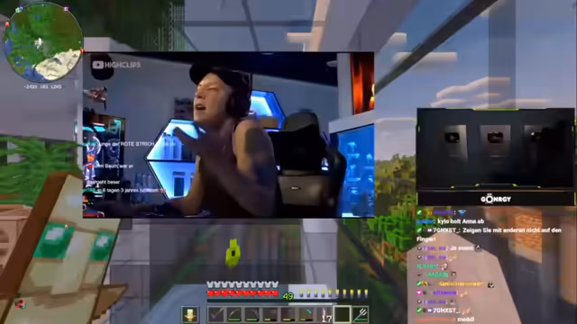 08:46:16Die Situation eskaliert weiter als der Streamer Schradin beschuldigt, undankbar zu sein. Schradin wirft dem Streamer wiederum vor, ihn permanent ärgern zu wollen. Um ihn zu motivieren, bietet der Streamer an, ihm bessere Ausrüstung wie ein Schwert und Tränke zu geben, um sich gegen Angriffe verteidigen zu können, was Schradin jedoch als nicht hilfreich ablehnt. Der Streamer kündigt an, nach einem weiteren gescheiterten Versuch, bei Schradin nicht mehr auf dem Server zu sein, um die negative Spirale zu durchbrechen.