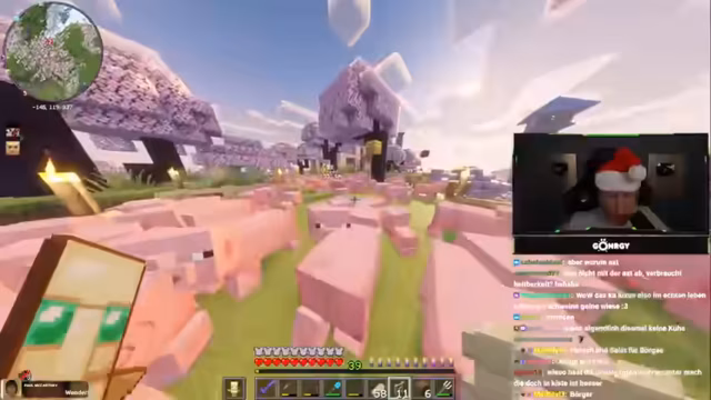 00:30:02Der Fokus verlagert sich vom Konflikt auf das Community-Engagement. Der Streamer interagiert aktiv mit Zuschauern, handelt mit Pannewitz seltene Ingame-Bücher und TNT aus und zeigt dabei Geschick in der Preisverhandlung. Gleichzeitig werden die Zucht von Schweinen und die Farm von Diamanten als wichtige wirtschaftliche Aktivitäten innerhalb des Spiels fortgeführt. Der Streamer betont die Win-Win-Situation für alle Beteiligten.