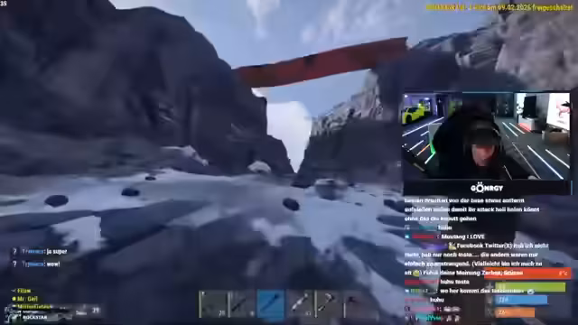 01:56:03Das Team trifft auf Trymacs und sein Team, die sich als freundlich erweisen. Trymacs äußert Unzufriedenheit mit seinen bisherigen Spielerfahrungen, da er oft sofort getötet wurde. MontanaBlack und Zarbex schenken Trymacs und seinem Team Waffen, darunter eine MP und Revolver, um ihnen den Einstieg zu erleichtern. Trymacs bedankt sich und verspricht, sich mit Healthtränken zu revanchieren. Es wird betont, dass man in Frieden kommt und keinen Stress sucht. Trymacs erkundigt sich nach der Stärke der Waffen und Rüstungen, was zu humorvollen Andeutungen führt. WLAN kauft Pay2Win-Türen im Steamshop, Sewo ist am Scrappen, und Strobel hat Porridge über seine Hose gekippt.