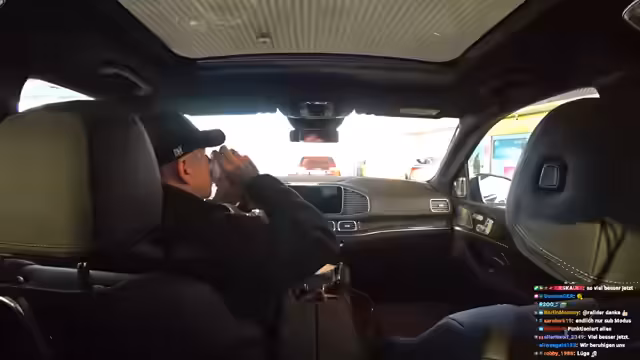 00:30:20Montanablack88 äußert, dass er aktuell keine Zeit für einen Podcast hat, während Sascha Interesse zeigt, aber diesen gerne mit Video in einer geilen Location umsetzen würde. Sie verpassen einen McDonalds, woraufhin Montanablack88 seinen Hunger betont und den Wunsch äußert, zu Burger King zu fahren. Es wird festgestellt, dass bald getankt werden muss, idealerweise an einer Tankstelle mit Burger King. Ein Zuschauer wird für seine ständige Präsenz im Chat erwähnt. Ein anderer Zuschauer wird für ein Schild mit Montanablack88s Namen gelobt. Montanablack88 erzählt eine Anekdote über Leute mit Schildern, die ihn an die OJ Simpson Doku erinnert. Er berichtet, dass er schon öfter Leute auf Autobahnbrücken gesehen hat, die ihn grüßen. Das Schiebedach kann nicht geschlossen werden, da die Kamera im Weg ist. Es wird über ein mögliches IRL-Stream vom Nürburgring gesprochen, wobei das schlechte Internet als Problem genannt wird. Montanablack88 macht sich über Yusufs Intelligenz lustig, betont aber gleichzeitig, dass er ihn schätzt. Sie diskutieren über IQ und emotionale Intelligenz, wobei Montanablack88 Sascha eine hohe emotionale Intelligenz zuspricht.