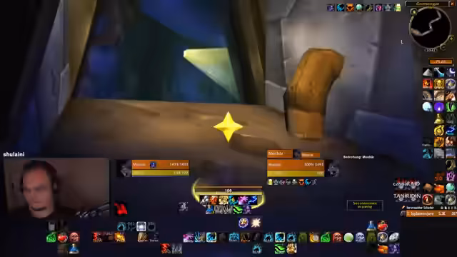 02:23:06Die Gruppe sucht nach einem seltenen Mob in einer Instanz und überlegt, wie sie ihn effektiv anvisieren können. Nachdem sie das Ziel nicht sofort finden, probieren sie verschiedene Target-Makros und Resets. Währenddessen tauchen unerwartet neue Spieler im Stream auf, die ebenfalls einen Schlüssel für die Instanz haben. Die Gruppe wechselt schließlich auf einen neuen Stream-Link, um gemeinsam weiterzuspielen.
