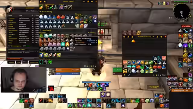 01:44:18Nachdem alle notwendigen Quests für den Einlass in Blackrock Depths (BRD) abgeschlossen sind, wird die Gruppe im Discord koordiniert. Man einigt sich darauf, Strat (Stratholme) zu laufen, wobei der Fokus auf die Bossdropps wie Ledermasken und -umhänge gelegt wird. Während Blade durch die Welt reitet, um den Banco zu eskortieren, wird gleichzeitig versucht, eine Gruppe für Strat zusammenzustellen, in der der Streamer DPS statt tanken wird, um die bisherige Routine aufzubrechen.