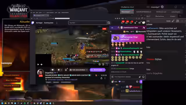 05:16:31Es gibt Pläne für einen Wechsel auf einen PvE-Server, auf dem die Horde-Gilde "Sauerkraut" zukünftig spielen wird. Der Streamer diskutiert mögliche Klassen und Rassen für den Server und zeigt Interesse, auch selbst einen Priester zu spielen. Dabei äußert er das Vorurteil, dass Priester sehr intelligente Menschen seien. Er kündigt an, ein YouTube-Video über Themen rund um den Stream anzuschauen.