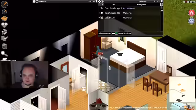 01:27:51Der Streamer beginnt das Spiel Project Zomboid und stellt fest, dass es eine sehr steile Lernkurve hat. Er ist sich unsicher, ob er direkt im Stream weiterspielen soll oder besser erst privat üben sollte. Gleichzeitig muss er sich mit der unübersichtlichen Steuerung und dem Inventory-System herumschlagen, was zu Frustration führt. Der Chat gibt Hilfestellungen, aber der Streamer fühlt sich überfordert von der Komplexität des Spiels und seinen Mechaniken.