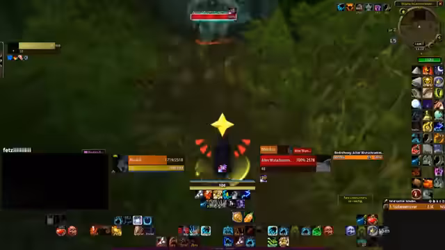 03:10:53Bei der Bewegung durch die Instanz gibt der Streamer klare Anweisungen zur Positionierung, um ungewollten Aggro zu vermeiden. Er wünscht sich, dass sich die Gruppe am Rand der Plattform aufstellt, um Schaden zu minimieren. Es kommt zu technischen Problemen, bei denen einer der Spieler aus der Gruppe geworfen wird, was kurzfristig die Kommunikation unterbricht.