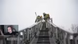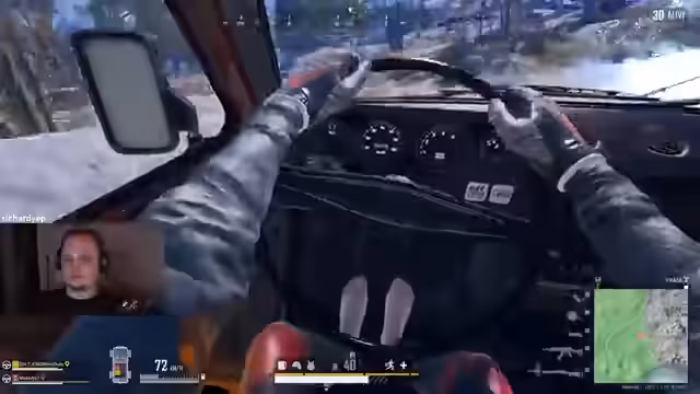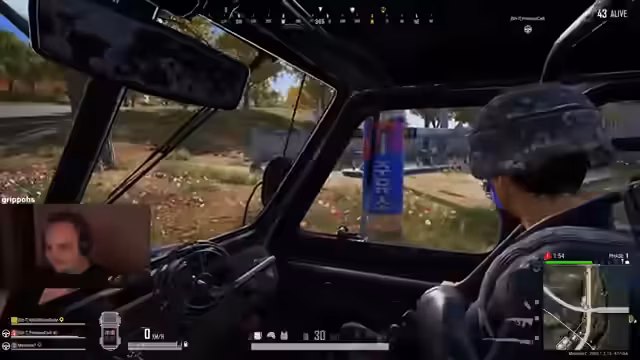 01:56:28Das Stream-Team unternimmt den Versuch, mit einem Pickup-Truck auf einen Vulkan zu gelangen, um einen Panzer zu erreichen, was aber scheitert, da kein Fahrzeug verfügbar ist. Stattdessen nutzen sie eine Seilbahn-Gondel, in die sie ihr Auto fahren, um sich in der sich verkleinernden Zone fortzubewegen. Bei dieser riskanten Aktion sind sie feindlichem Feuer ausgesetzt und müssen ausweichen, um nicht ausgeschaltet zu werden. Die Fahrt in der Gondel bietet einen taktischen Vorteil, da sie so schnell über offenes Gelände gelangen können, ohne sich direkt Gefahren auszusetzen.