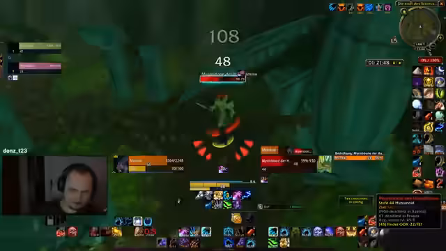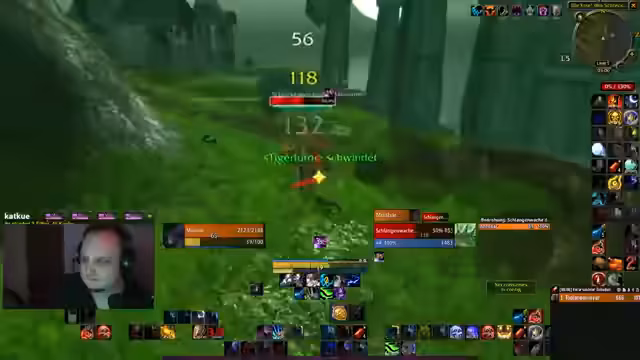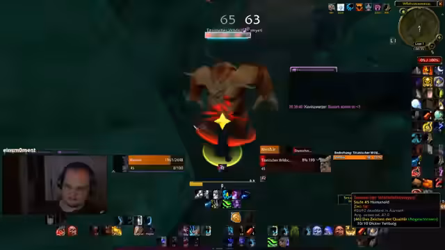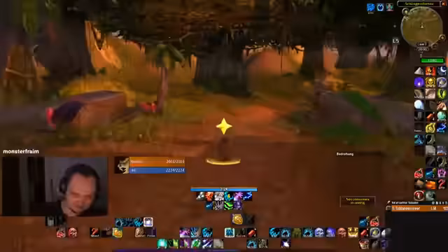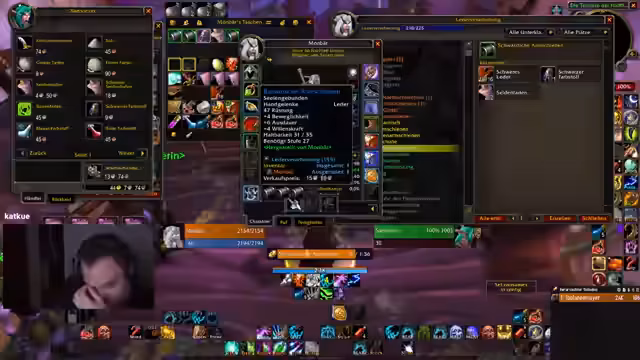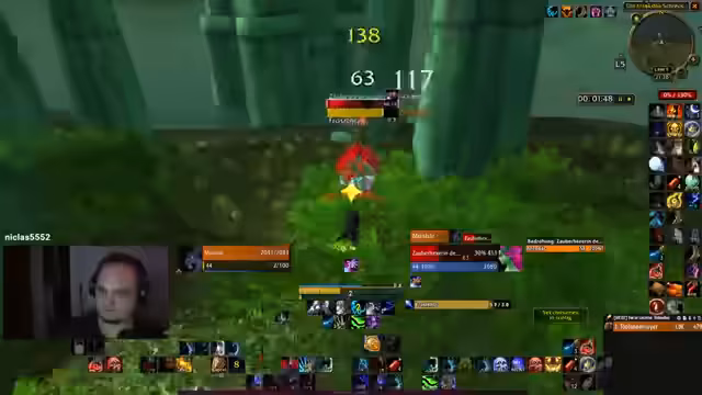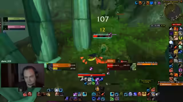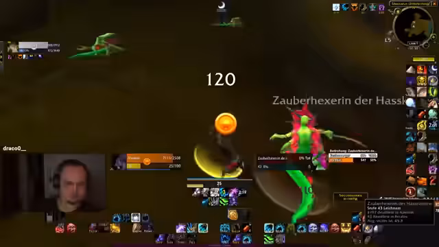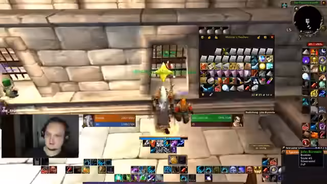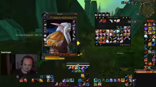 00:01:15Nach dem Stream-Start äußert der Streamer Erwartungen an einen anstehenden Buff. Er wünscht sich, dass Suki, eine wichtige NPC-Figur, ihm eine Seite eines Buches gibt. Nach erfolglosem Buff-Check konzentriert er sich auf das Farmen von Seiten und anderen Ressourcen wie Gold und Wildranke, um seine Lederverarbeitung zu leveln. Er erwähnt zudem einen Traum vom Sterben in WoW und stellt die Rolle des Heilings in WoW als sehr stressvoll dar, da die Verantwortung für das Überleben der Gruppe liegt.