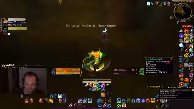 01:30:23Nach einer kurzen Unterbrechung und dem Erreichen von Level 44 beginnt der Streamer mit dem Naga-Farming in Feralas, um Erfahrung zu sammeln. Er beschreibt die Naga als gefährliche Gegner, insbesondere die Caster, die viel Schaden verursachen. Er äußert Bedenken bezüglich der nahegelegenen Naga-Höhle, die er als die gefährlichste Höhle des Spiels bezeichnet. Die Jagd auf die Naga gestaltet sich schwierig, da die Drops wie schwarze Perlen selten sind und der Kampf gegen sie eine ständige Herausforderung darstellt.
