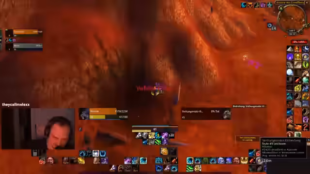 06:32:20Der Streamer befindet sich in einer heiklen Situation auf seinem Level-44-Charakter. Er äußert große Angst und Sorgen um seinen Charakter, besonders bei möglichen Todesfällen durch Disconnects. Der Druck, als Mitorganisator bis Level 60 zu kommen, ist hoch, da er es selbst sehen möchte. Ein Tod in dieser Levelrange wäre besonders schmerzhaft, da die Fortführung des Charakters unwahrscheinlich wird und das motivatorische Loch auf Level 50 droht. Der Streamer beschreibt diese Phase als extrem stressig und fordernd.