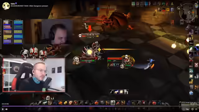 03:11:11Ein Raid in Upper Blackrock Spire wird detailliert analysiert, bei dem eine Gruppe aus verschiedenen Klassen wie Magiern, Jägern und Kriegern auf General Dracisat trifft. Es zeigen sich erhebliche Probleme bei der Aggro-Verteilung, da der Off-Tank fehlt oder nicht rechtzeitig agiert, was zu Chaos und Gefahr für die Heiler führt. Die Kombination aus einem Paladin mit Stoffrüstung, der den Boss tankt, wird als fahrlässig kritisiert, da dies die Gruppe unnötig in Gefahr bringt. Die inefficienten Pulls und fehlenden Koordinationsmaßnahmen werden als aufschlussreich für unerfahrene Gruppen dargestellt.