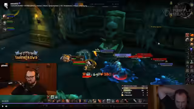 05:01:12Der Streamer erinnert sich an seine Vergangenheit als Wettkampfspieler. Er erwähnt, dass er mit Druiden und Warlocks auf Rang 1 gespielt hat und gemeinsam mit einer Gilde („druck“) parsen, also bestmögliche Schadenswerte anstreben, müssen. Als beispielhaften Top-Spieler nennt er „Maverick“ aus der Gilde „druck“, der in Heroic/Raids konstant 100%-Parses (perfekten Schaden) erreicht hat. Für solche Ergebnisse sei es notwendig, aggressiv zu spielen und jedes Detail der Rotation zu optimieren.