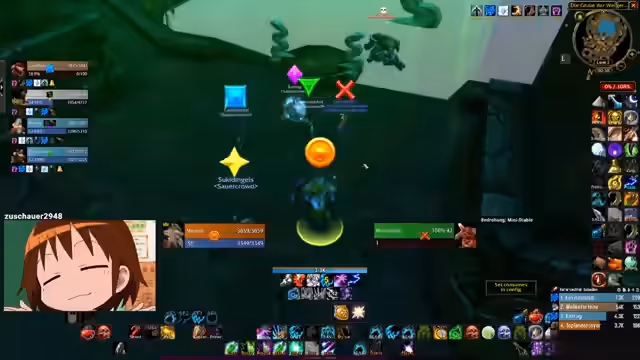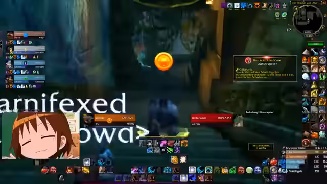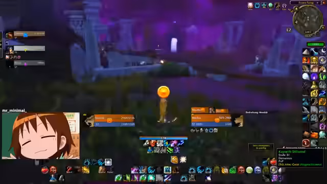 02:57:22Der Kampf gegen den Mini-Boss 'Brut' wird vorbereitet und diskutiert. Die Gruppe analysiert seine Fähigkeiten, einschließlich eines gefährlichen Ground-Kicks und der Fähigkeit, Untote zu beschwören. Es geht um die genaue Positionierung, um Schaden zu vermeiden, und die Nutzung von Dispels gegen negative Effekte. Die Koordination wird durch technische Probleme, wie einen Absturz von OBS, erschwert, erfordert aber schnelle Anpassungen.